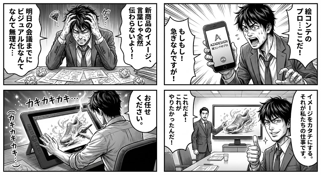 弊社の広告漫画をNano Banana Proで描いてみました。